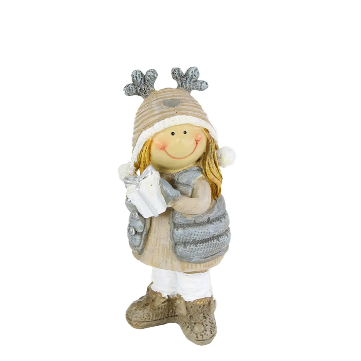 Produktinformationen „Deko Winterkind Mädchen mit Geschenk, Wintermädchen mit Mütze und Weste, 10cm“