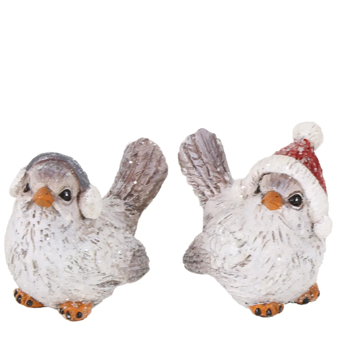 Produktinformationen „Deko Wintervogel beschneit, Vogel mit Ohrschützer und Glimmer, 9x8cm, Keramik“