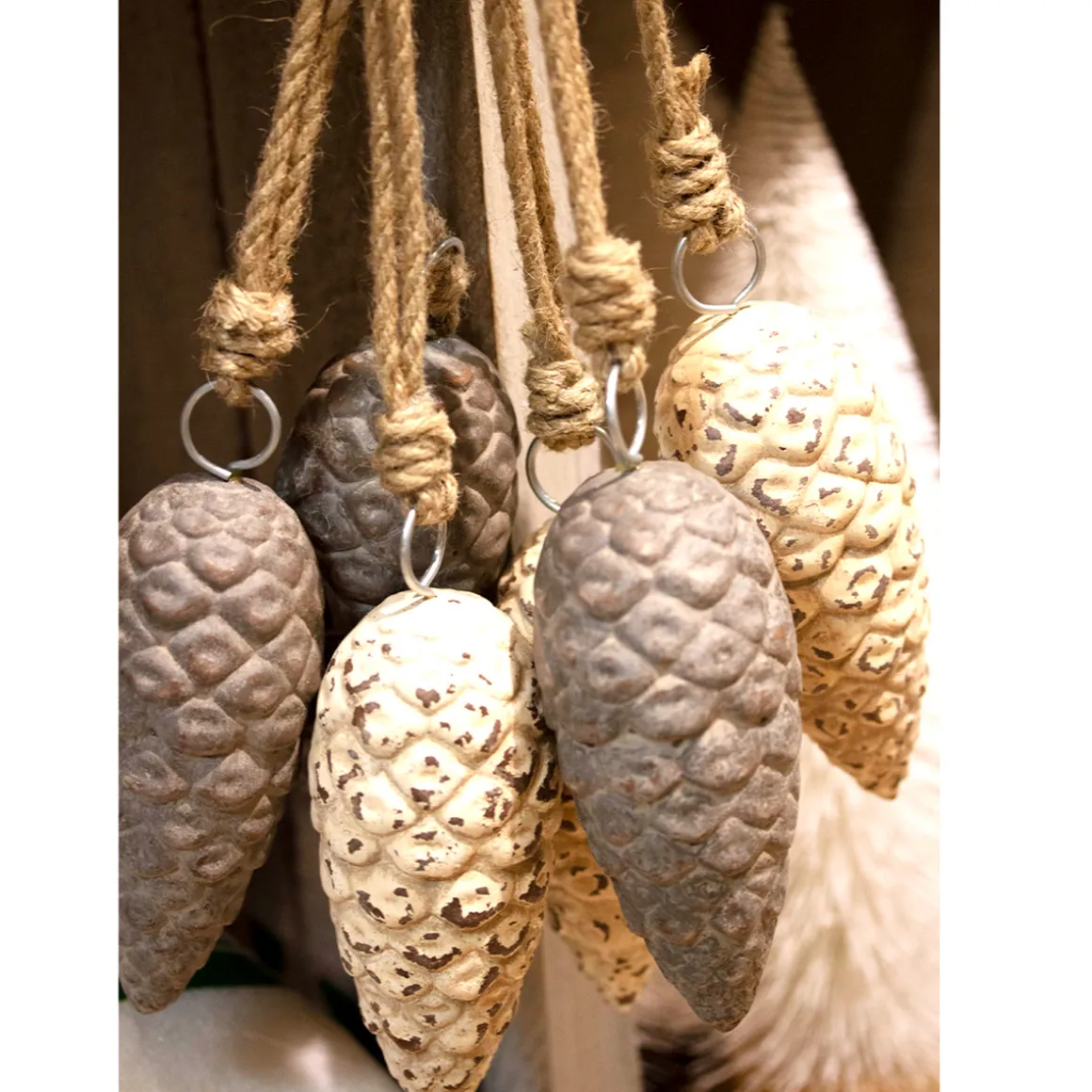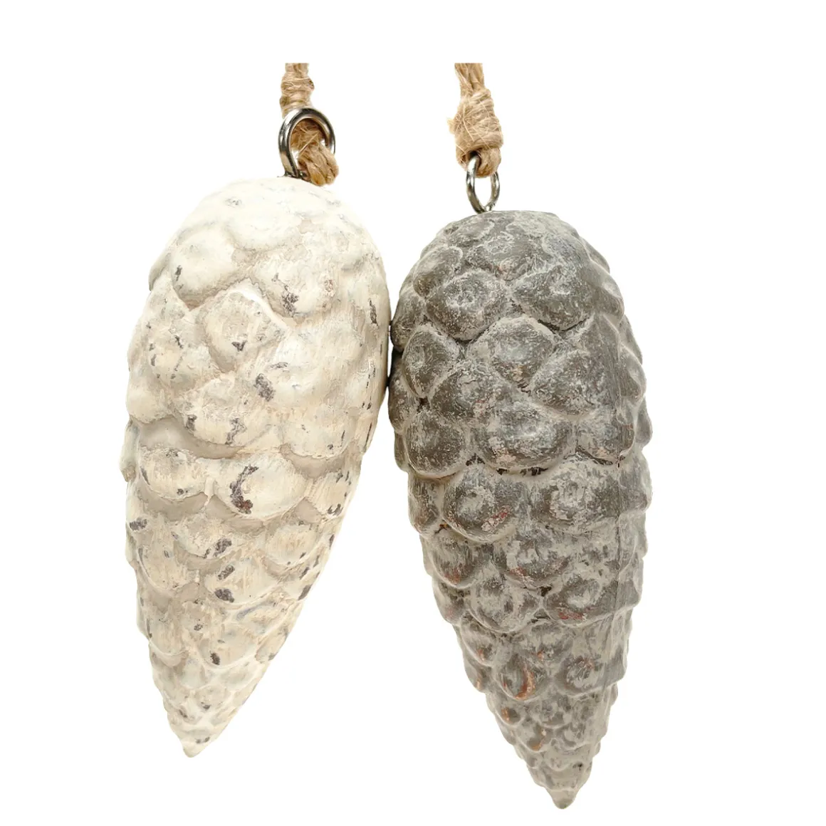 Deko Zapfen, Tannenzapfen cremeweiß used look, Zapfenhänger aus Keramik, 13cm