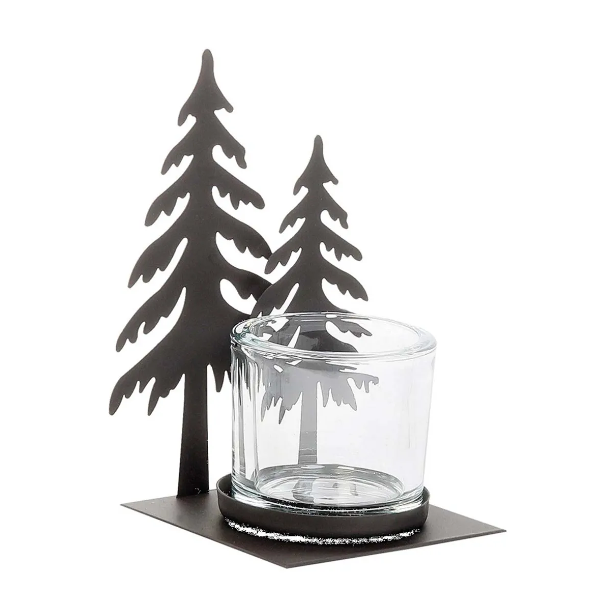 Eisen Windlicht Tannen, 2 Tannenbäume mit Teelichthalter, 20x12cm, WMG Grünberger