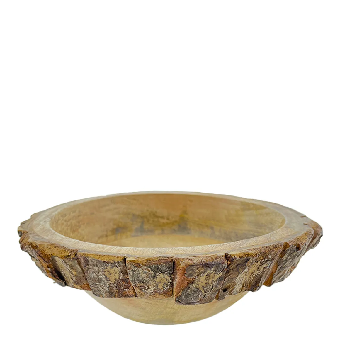 Holzschale Natur, rustikale Mangoschale mit Rinde, Ø22cm