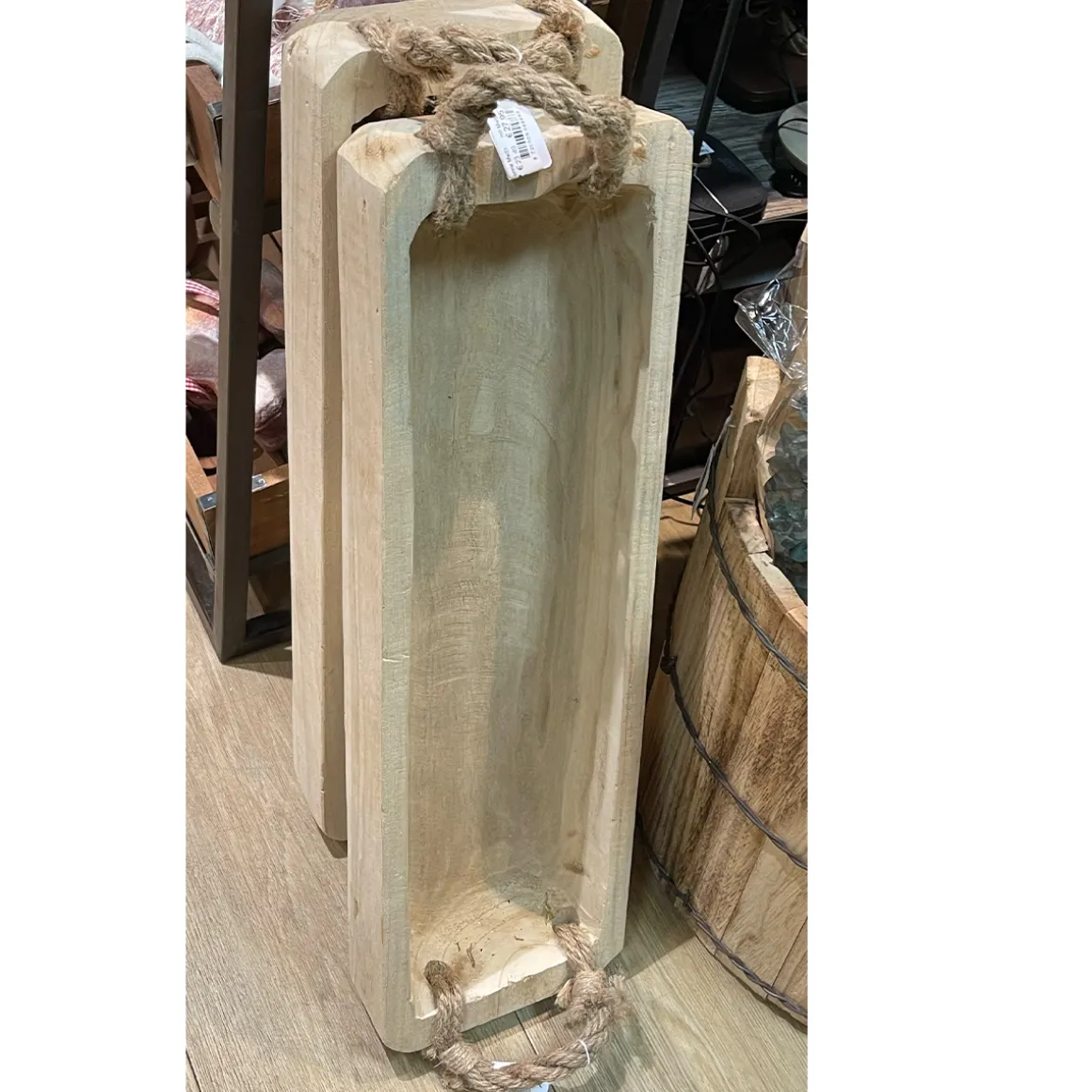 Produktinformationen „Holzschale Naturholz, Holztablett mit Jutegriff, 58x18cm“