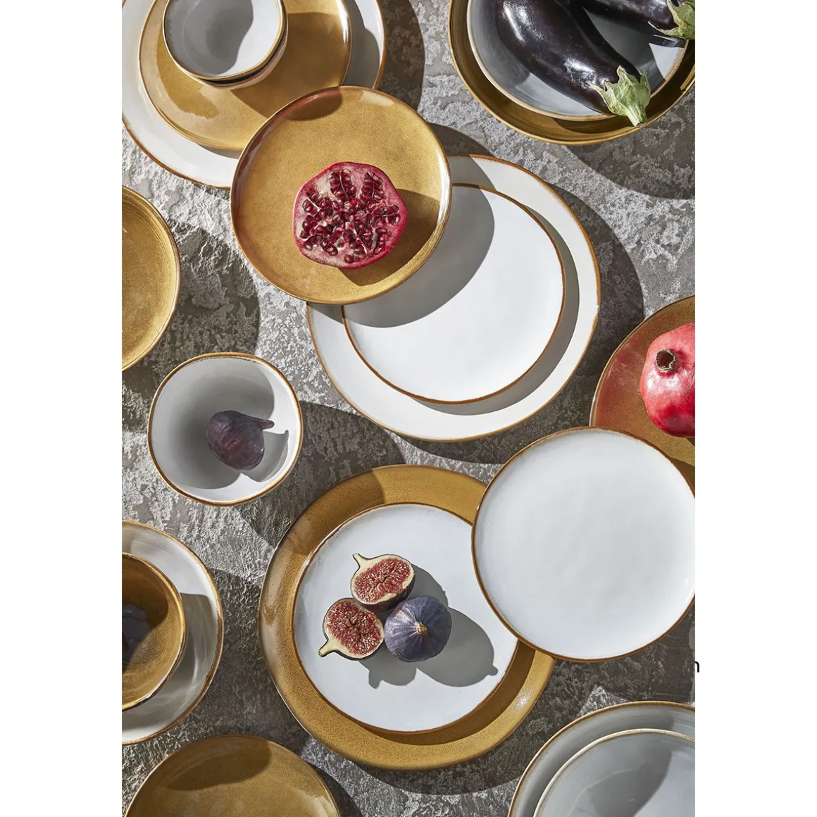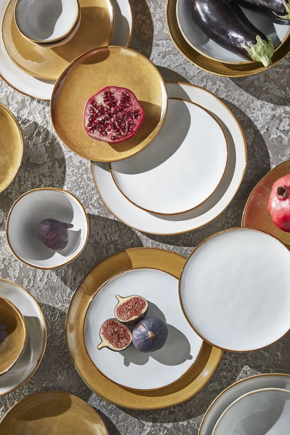 Keramik Schüssel, Tabo, handgefertigt, weiß, Rand braun, 6x14cm, Mica Decorations