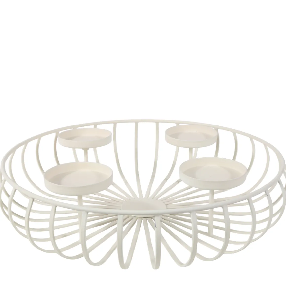 Kerzenhalter Schale, Draht-Advents-Kerzenschale, creme, Ø36cm