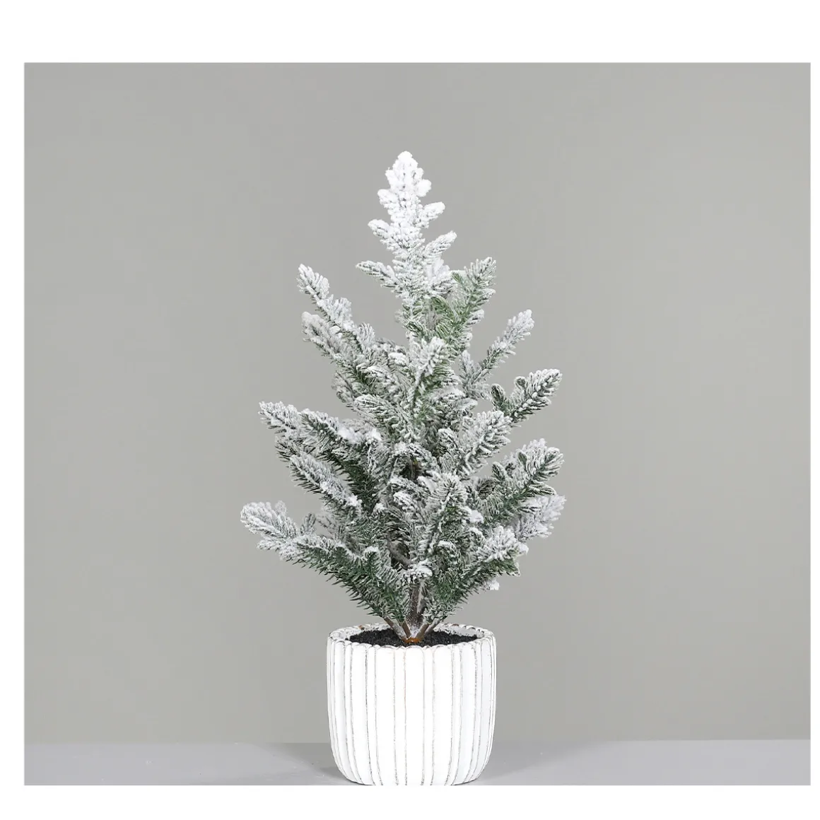 Kunstpflanze Tannenbaum beschneit, Tannenbaum im weißen Zementtopf, 42cm, DPI