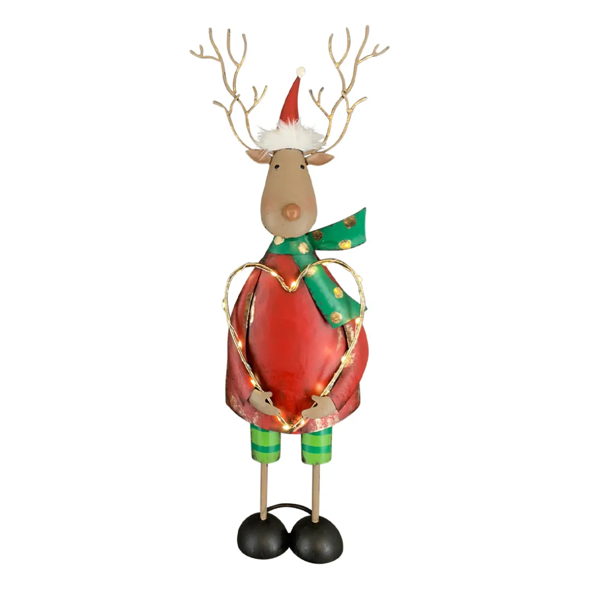 LED Rentier mit Herz, roter Metallhirsch mit beleuchtetem Herz, 62cm