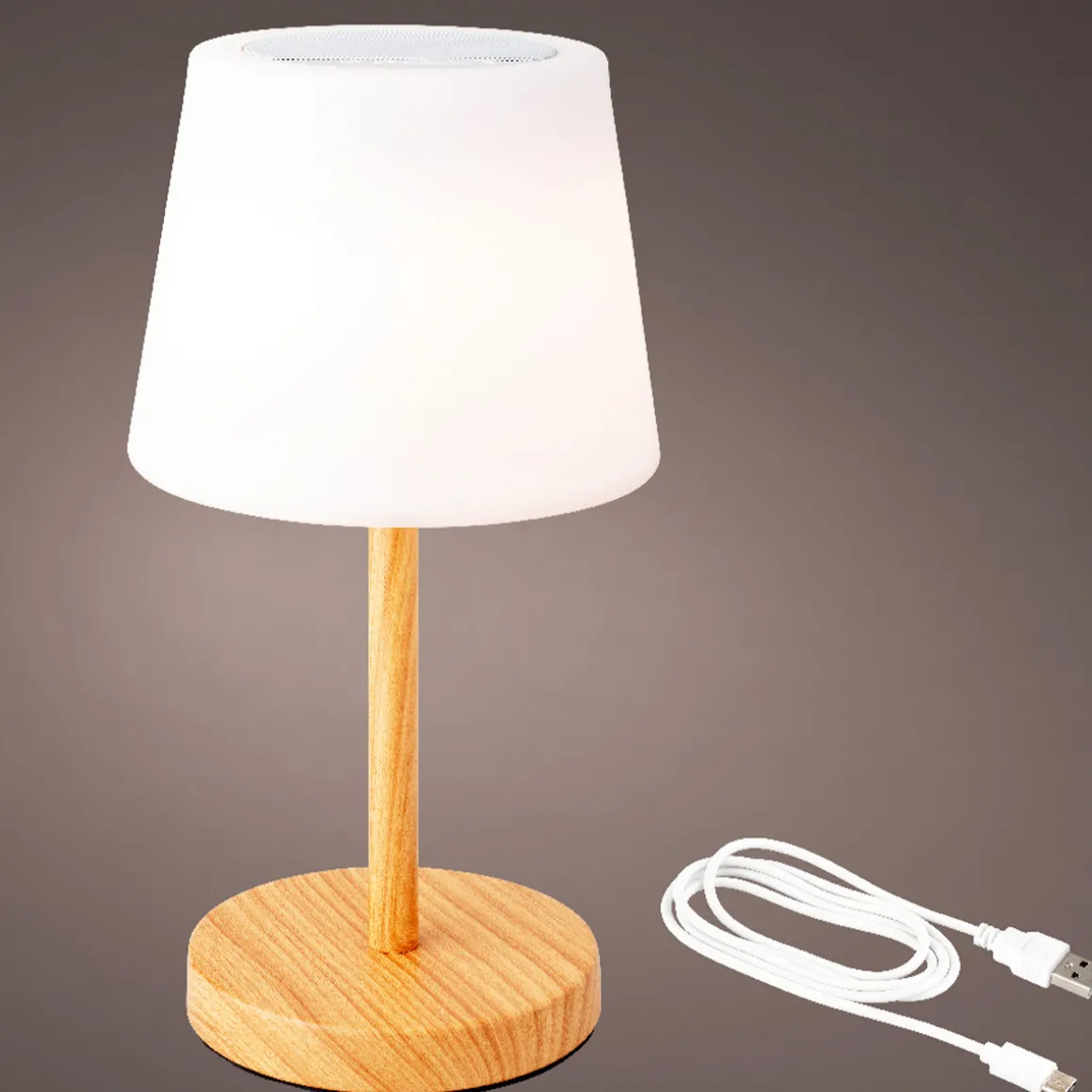 Produktinformationen „LED Tischleuchte mit Lautsprecher, aufladbar, warmes weiß, outdoorgeeignet, 38x20cm“
