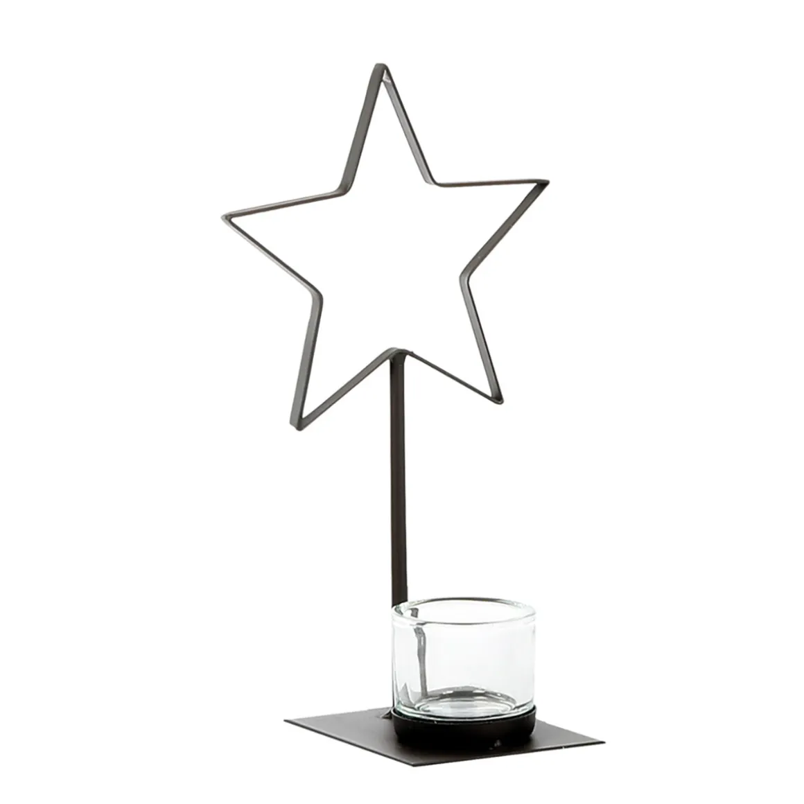 Metall Windlicht, Stern mit Teelichtglas, 30cm, WMG Grünberger