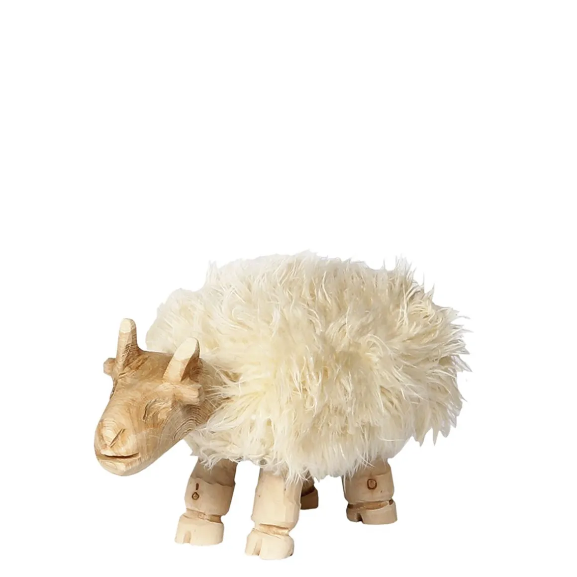 Schaffellhocker Berti, Holzhocker Schaf, Naturholz-cremeweiß, 30x50cm, WMG Grünberger