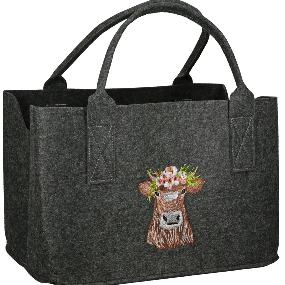 Produktinformationen „Shopper Kuh Adelheid, Filztasche mit Henkel und Kuhmotiv bestickt, 26x40cm, Gilde“