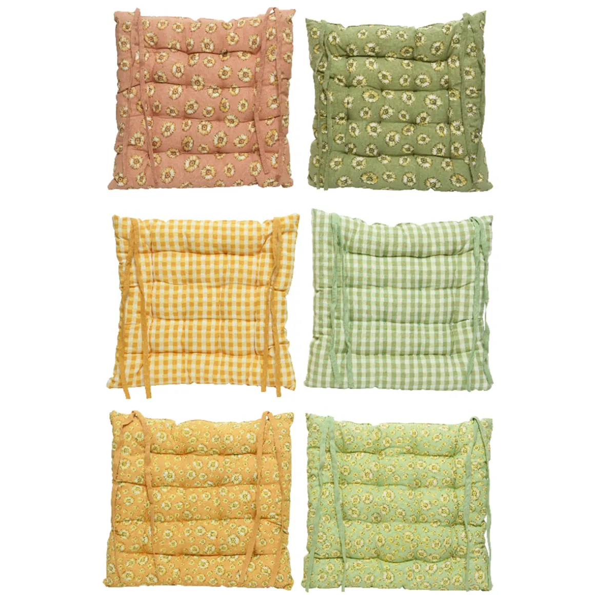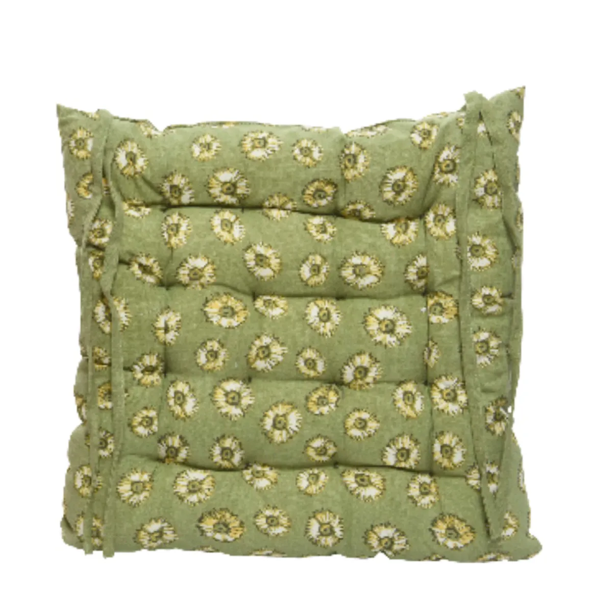 Produktinformationen „Stuhlkissen mit Blumen und Bändern, grün, 40x40cm, Baumwolle“