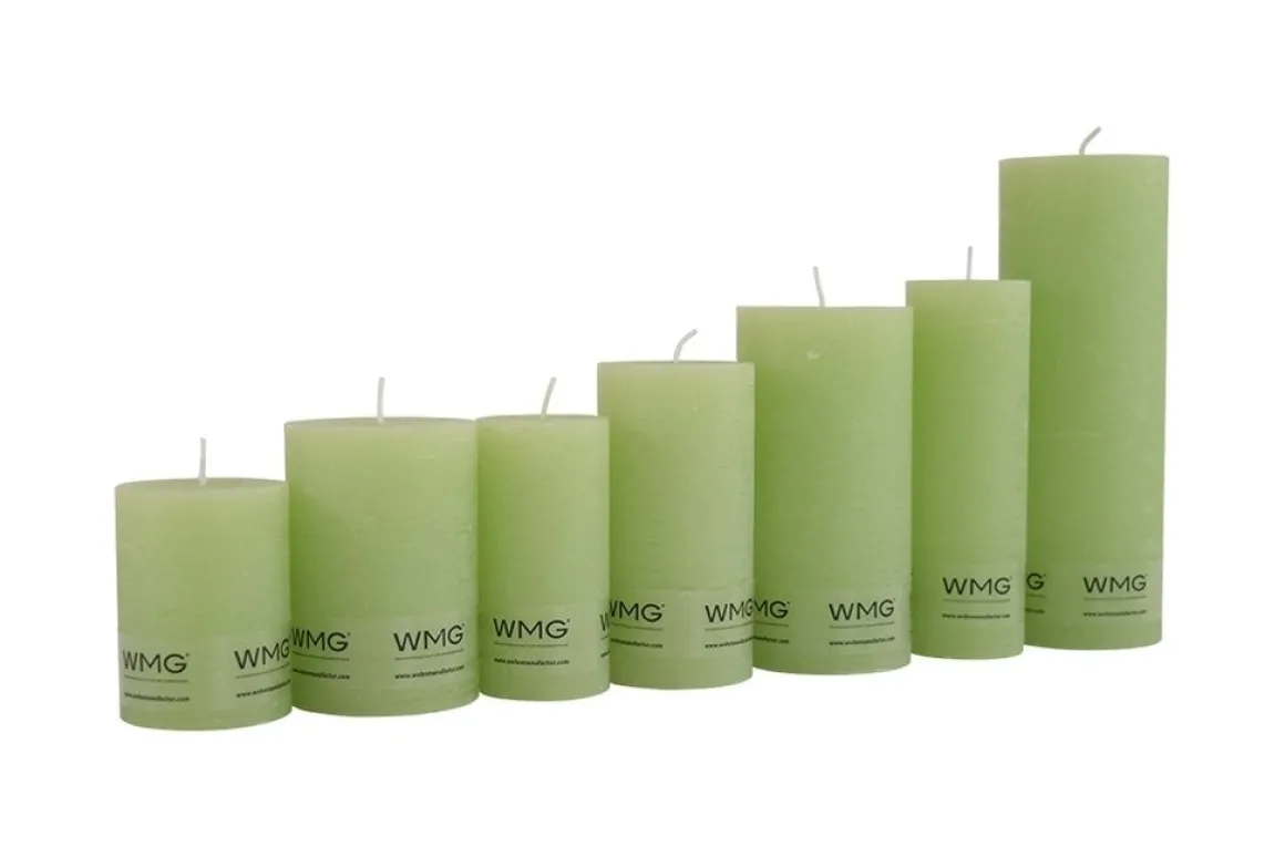 Stumpenkerze Rustic Hellgrün, Wachskerze, 40x38mm, WMG Grünberger