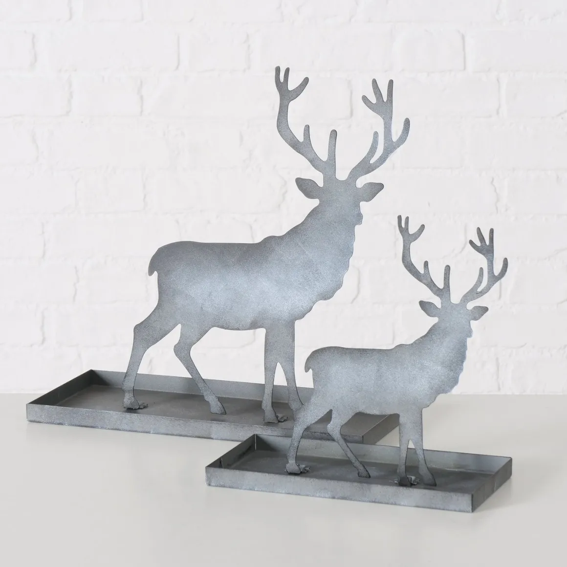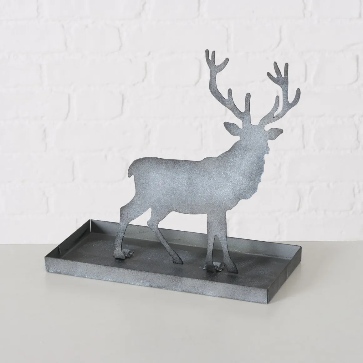 Tablett Hirsch Luga, Metalltablett mit Hirsch abnehmbar, grau, 25x26cm