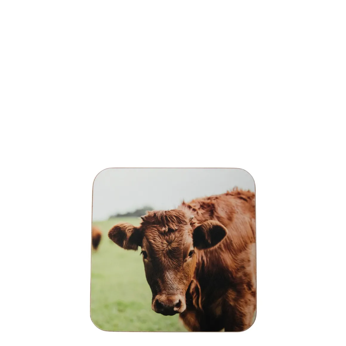 Untersetzer Schweizer Kuh, Kuh auf der Wiese, 10x10cm, Set/6, MDF/Kork, Mars & More