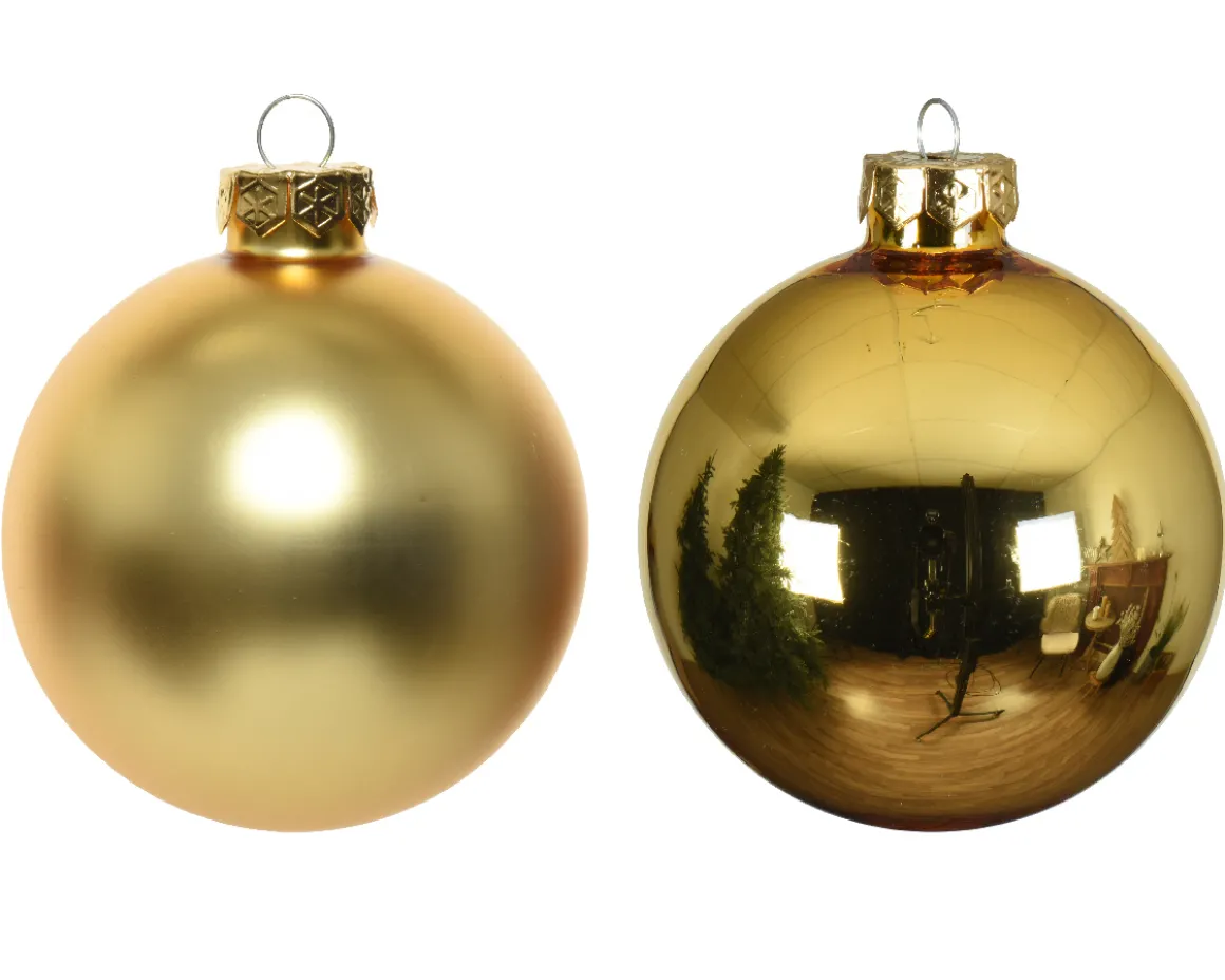 Weihnachtsbaumkugeln aus Glas, gold glanz/matt, Ø8cm, 16St/Box, Decoris