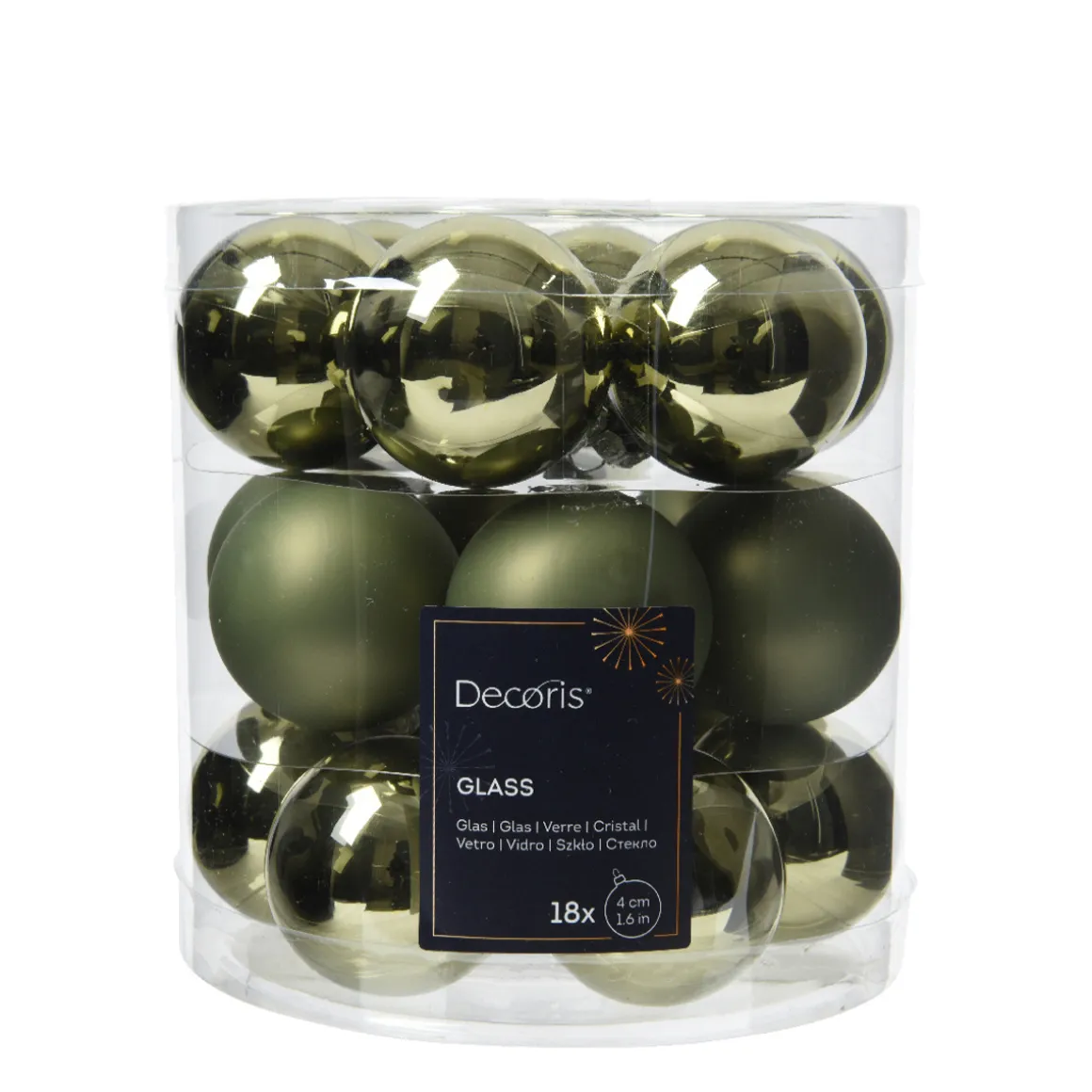 Weihnachtsbaumkugeln aus Glas, rosmaringrün glanz/matt, Ø4cm, 18St/Box, Decoris