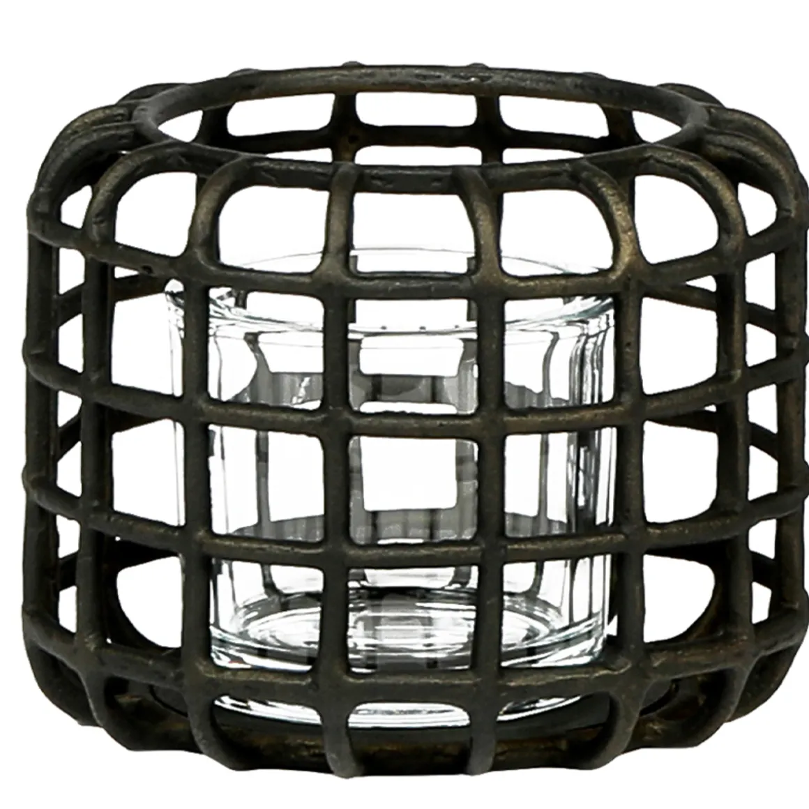 Windlicht Gitteroptik Zenon, Kerzenhalter antik look bronze, 16cm, WMG Grünberger