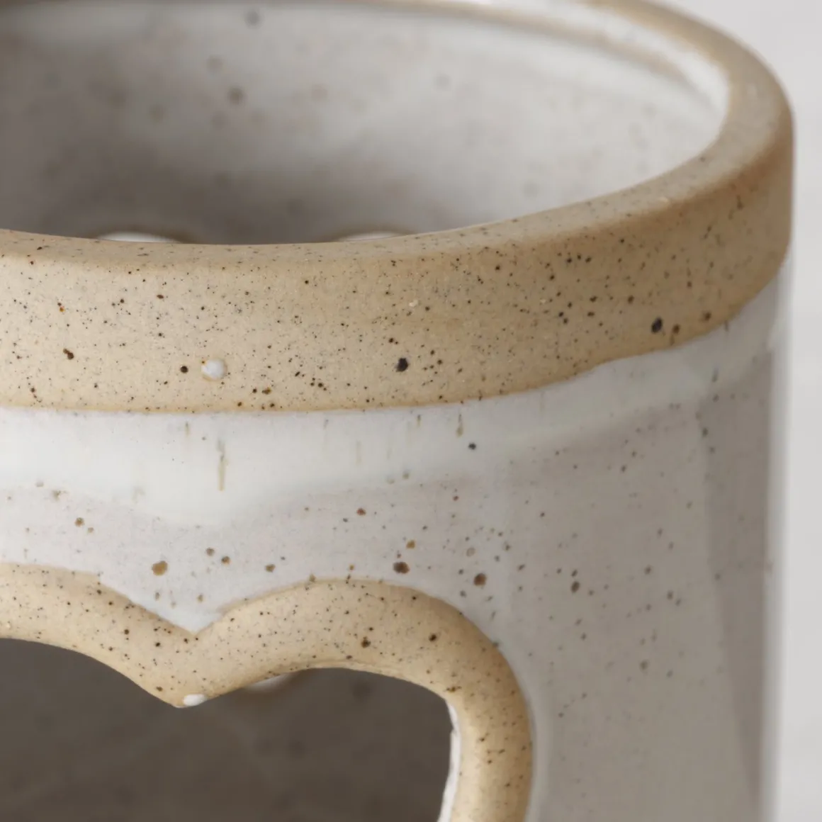 Windlicht Noomi mit Herz, Windlicht mit Farbrand, Steingut, naturtöne, 11cm, Boltze Home Collections
