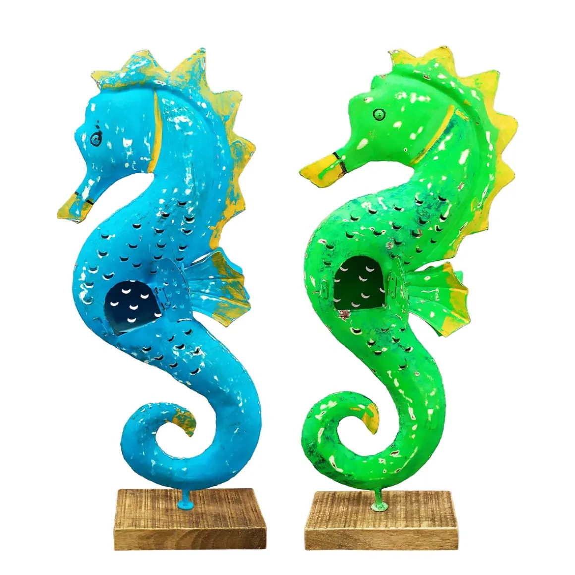 Windlicht Seepferdchen grün, Seepferdchen mit kleinem Türchen, 65cm, Metall