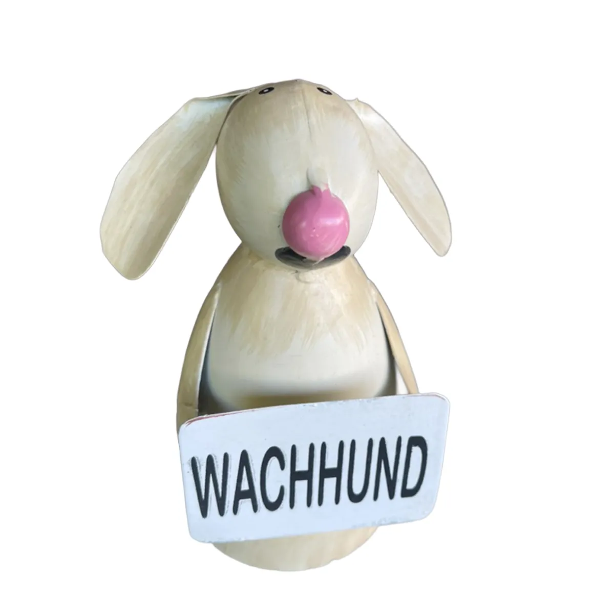 Produktinformationen „Zaunhocker Hund, Metallhund beige used look mit Schild: Wachhund, 19cm“