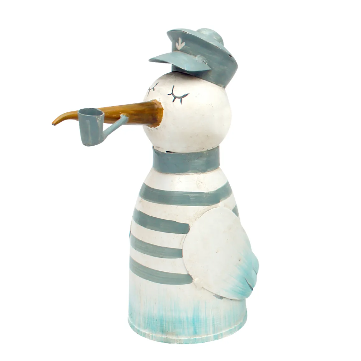 Produktinformationen „Zaunhocker Matrose Möwe, Metallvogel mit Pfeife und Ringelshirt, used look, 20cm“