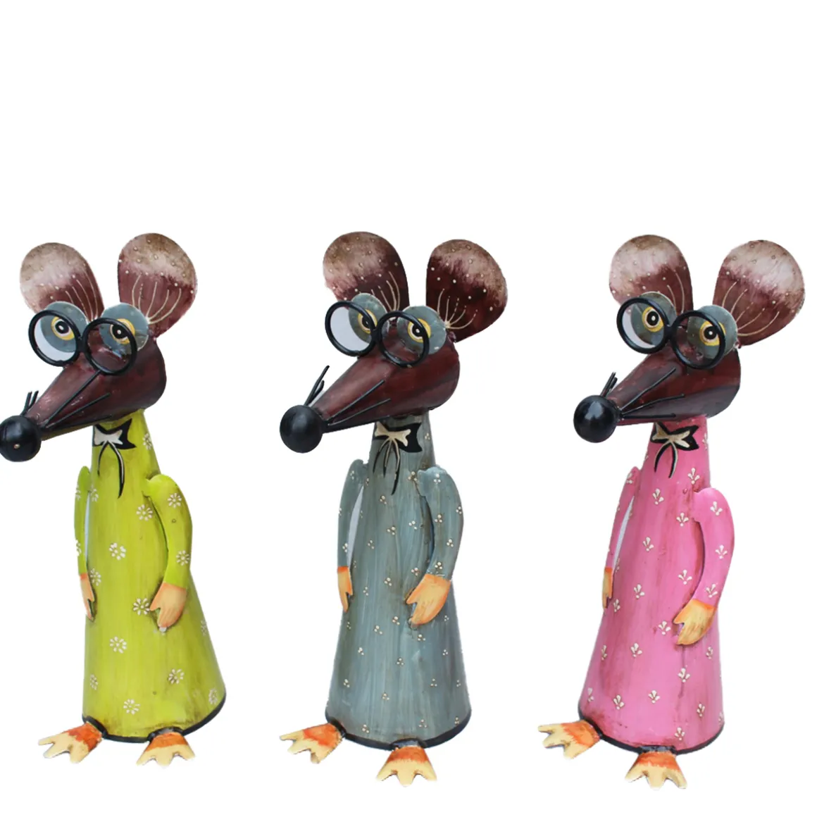Zaunhocker Maus mit langer Nase und Brille, Metallmaus mit grünem Kleid, 30cm